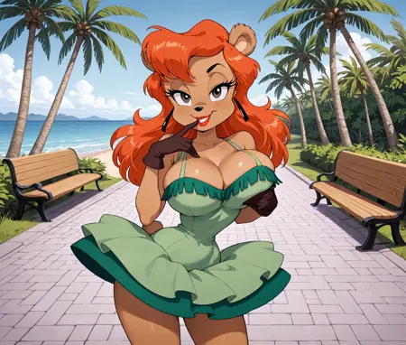 ジュリー・ブルイン、茶色の毛、オレンジ色の髪、クマ、クマの耳、ふわふわした毛、赤い唇、長いまつ毛、黒い目