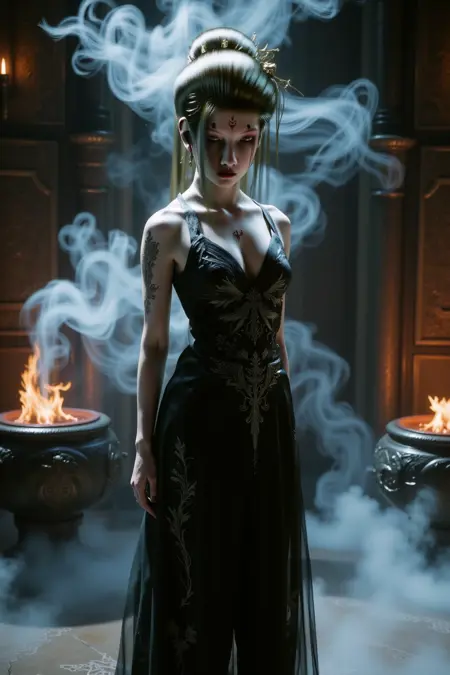 模型介绍:黑神话四妹(8.27升级版)- 重量:1.2 - 生成建议:两个新版本V3 V4效果良好,基础模型为flux1-dev-fp8.safetensors,采样器:euler,调度器:simple。您可以尝试以下提示词:效果极佳。站在屋顶上的女子为动漫风格,身着紧身黑色皮衣,胸部丰满,额头高耸,眉心有红色印记,双腿修长。面部清晰,周围有白色光晕,构图完美,角色面部清晰,桂花飘浮于空中,清晰的轮廓光、边缘光,梦幻感,聚光灯效果,8K分辨率。