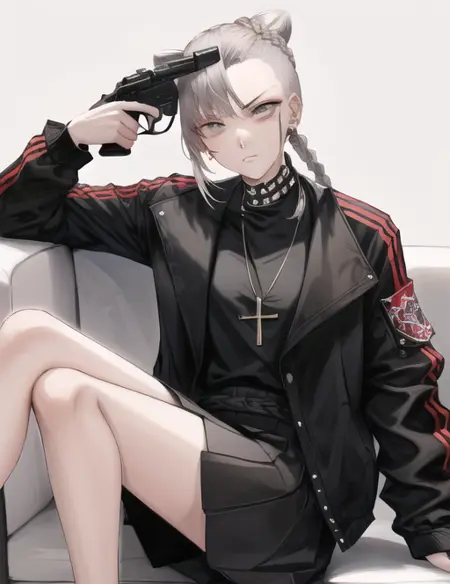 Well, I _t_ried to make this work, but I won't lie, you WILL have to wrestle with this to get what you want. This lora is designed to work with both guns and finger guns, all you have to do is prompt as such. However, I've tried everything, but it will, no matter what and whenever it wants to, give two guns to the head instead of just one. You can use as many negative prompts as you'd like but it won't get rid of it forever. I've retrained it multiple times, but that didn't work either. So in the end, since it still technically does what it's meant to, I'm still gonna post it anyway.