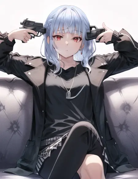 (gun, holding gun, weapon, holding weapon:1.4), dual wielding, double finger guns