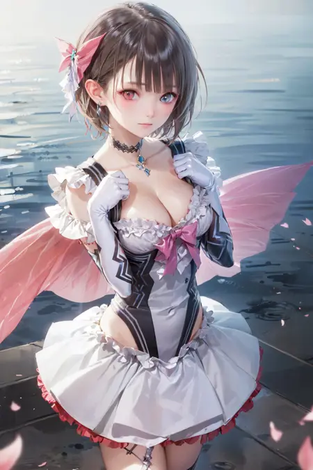 特徴: 異色双瞳、青い目、白い肘手袋、翼、エプロンライン
