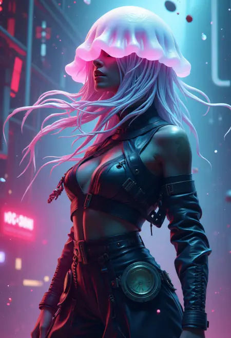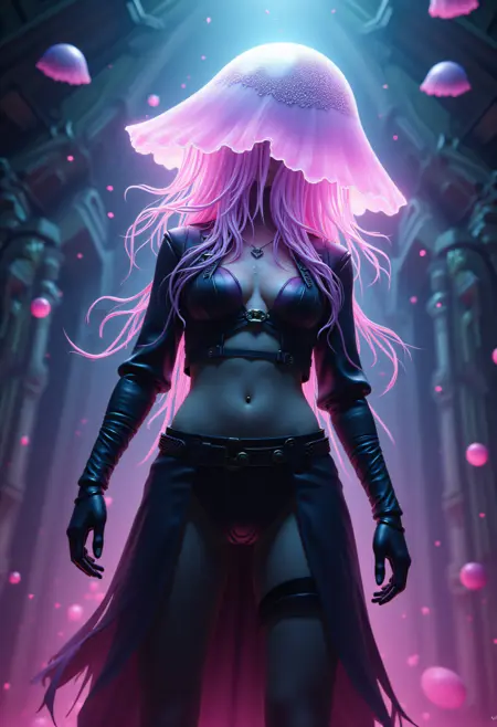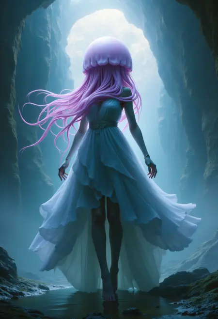 - 哥特恐怖美学:捕捉Nisa——水母女士——那空灵而哥特的风格与令人毛骨悚然的水母般特征所体现的不安之美。
