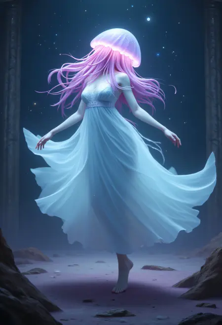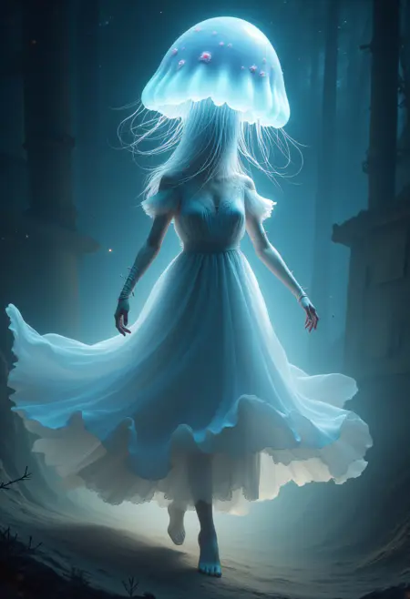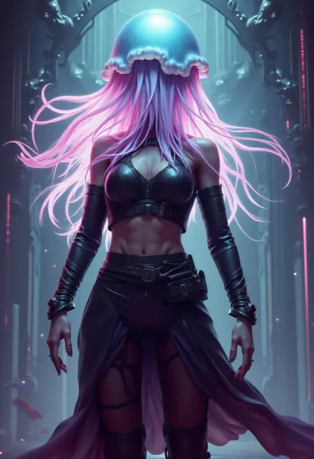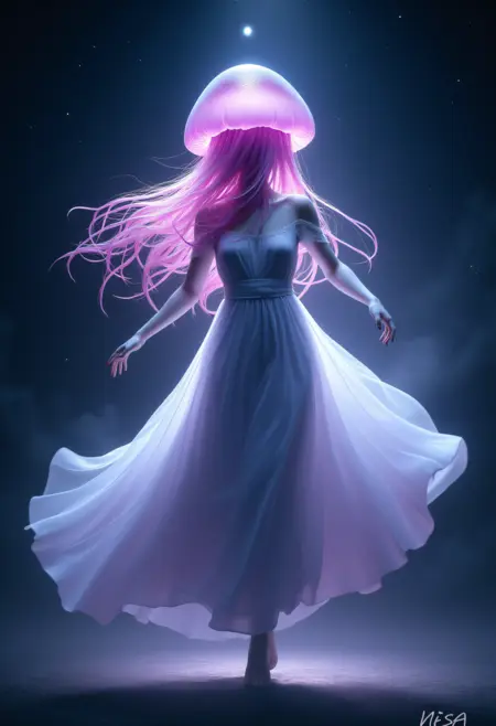 - 提示细节:为获得最佳效果,请使用详细提示,明确指定Nisa哥特与超现实设计的关键特征,如其水母状特征、黑色服饰及整体阴森氛围。尝试不同场景与描述,充分挖掘此风格的创意可能性。