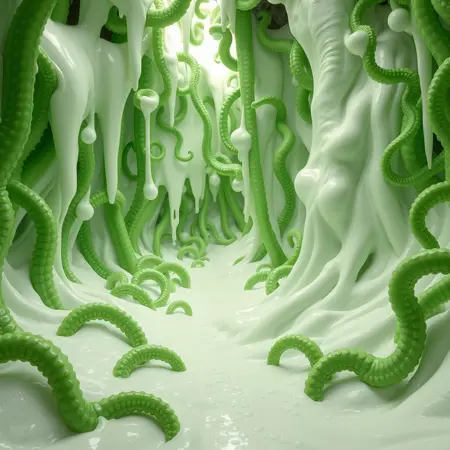 这个动漫LoRA为你的图像添加了带有大量白色黏液的绿色触手。