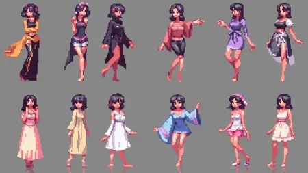 このLoRAは進行中の作品ですが、現在は任意のレンダリング解像度で一貫したサイズのピクセルを提供します。