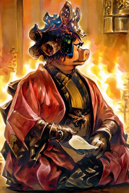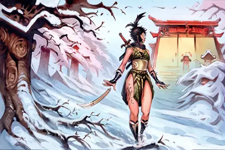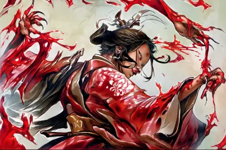 <장르>,일러스트 \(스타일\), from "legends of the pierced veil: the mask of fudo" an illustration of