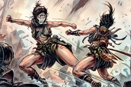 세바리오 테누타의 만화 "피어스드 베일의 전설: 후도의 마스크"에서 가져온 예술작품