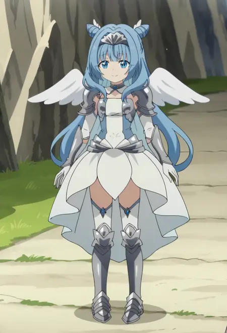 衣装1:白いドレス、白い手袋、肩アーマー、アーマー、アーマーブーツ、タイツ