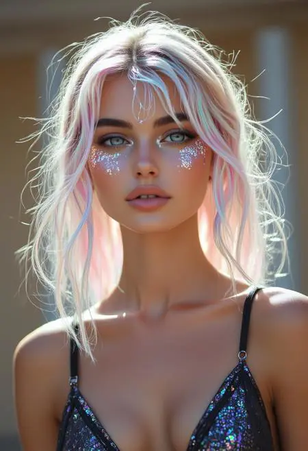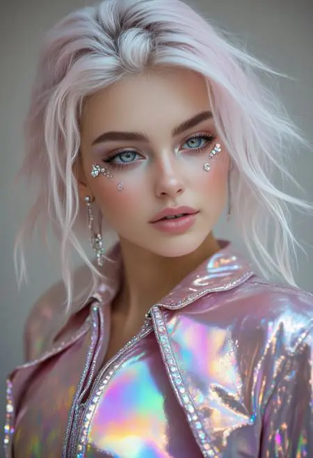 此LoRA为您的作品添加惊艳的 虹彩 效果,捕捉如肥皂泡、羽毛和油膜等表面上变幻的彩虹色。非常适合为您的设计增添一种梦幻般的反光质感。