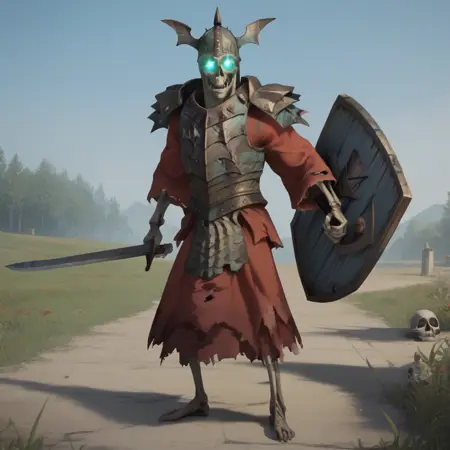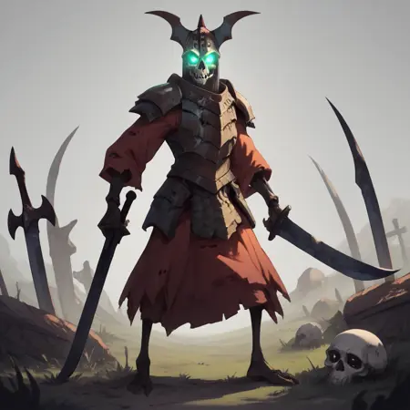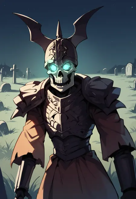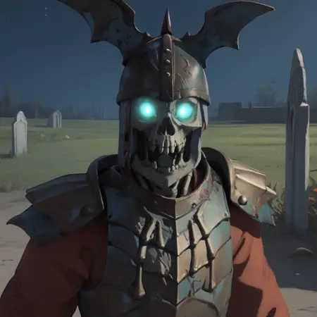 GraveGuard, helmet, armor, skull, skeleton, glowing eyes,
