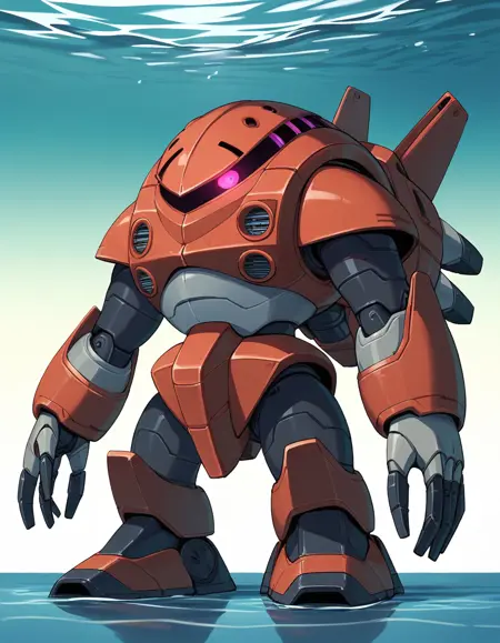 Amphibious Mobile Suit, mecha, robot, one-eyed, glowing eye, zeon