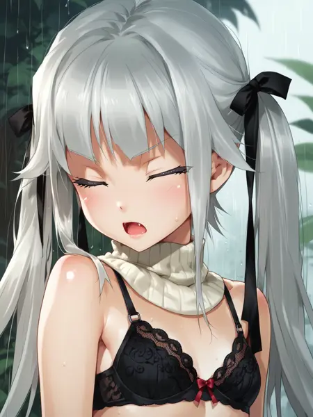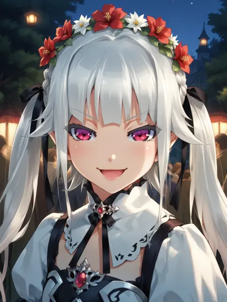 red eyes, twintails, hair ribbon, black ribbon, black dress, puffy sleeves, choker(addgothic lolita, lolita fashionat your own risks, Civitai doesn't seem to like it)Nun: