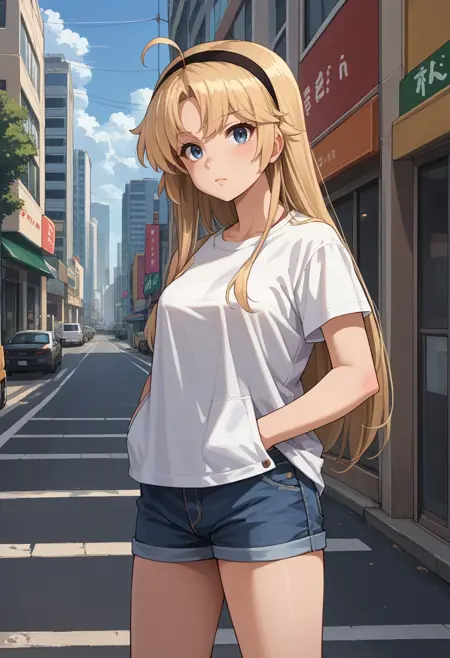 ErenKohagura, blonde hair, long hair, ahoge, black hairband
