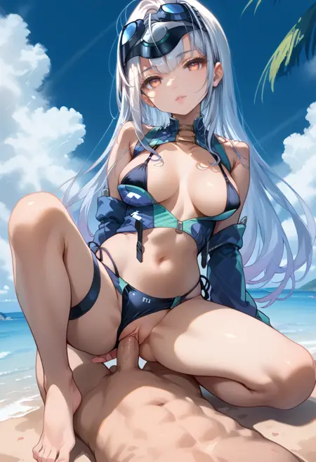 태그(옷): kos-mos ver4 model wx, 검은색 이마 보호대, 파란색 다이빙복, 파란색 장갑, 스노클, 흰색 비키니 <-or-> 검은색 비키니