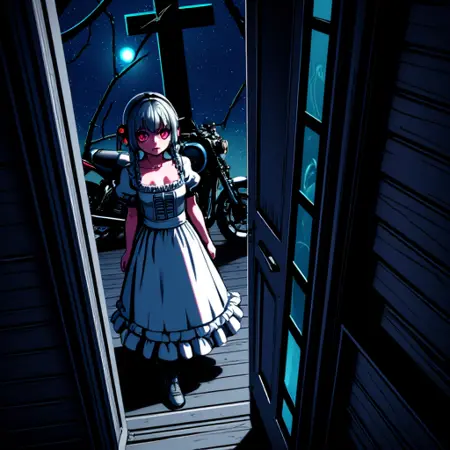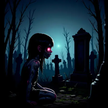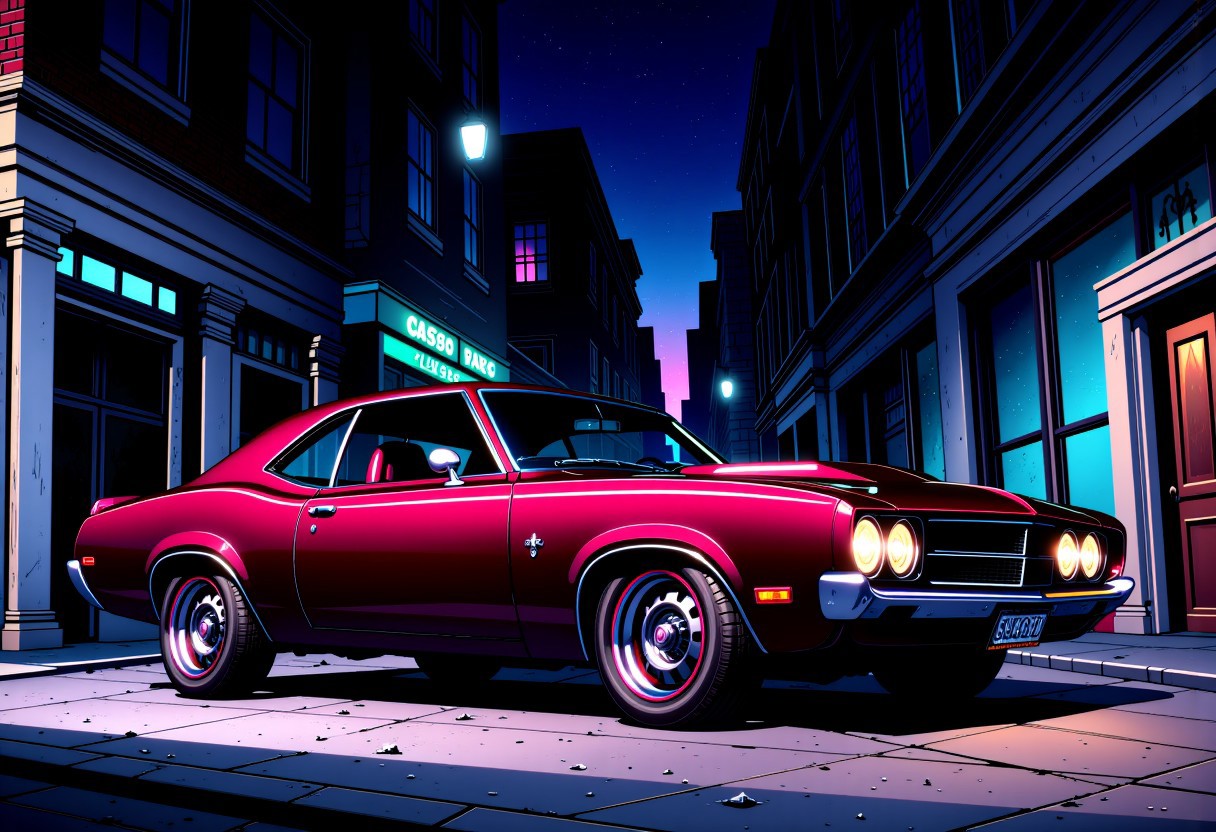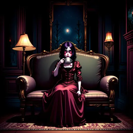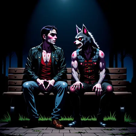 暗く、高コントラストな挿絵を作成します。FLUXはデフォルトで日中の光を想定しているため、それ以外を望まない場合はプロンプトに'dark'または'night'を含めることを推奨します。可能な限りさらに例を挙げたいところですが、FLUXはバズを非常に速く消費します。推奨される強度は約1.75です。