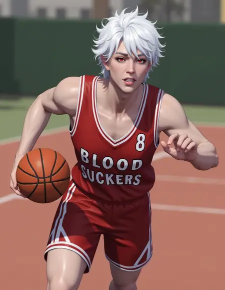 追加すると役立つタグ: 白髪、赤い目、男性、男性的、ヴァンパイア