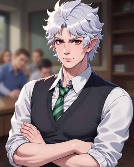 helpful tags to add: white hair, red eyes, man, masculine, vampire