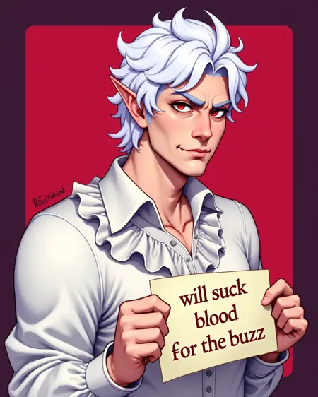 I needed to have my favorite vampire edgelord in Flux, and I wanted to give LoRA training a shot, so here we are!! this has been trained exclusively on screenshots of Astarion from Baldur's Gate 3 and AI images I have generated in SD1.5, SDXL, and SD Pony with other LoRAs. No human-created fan art has been used in the training set.
