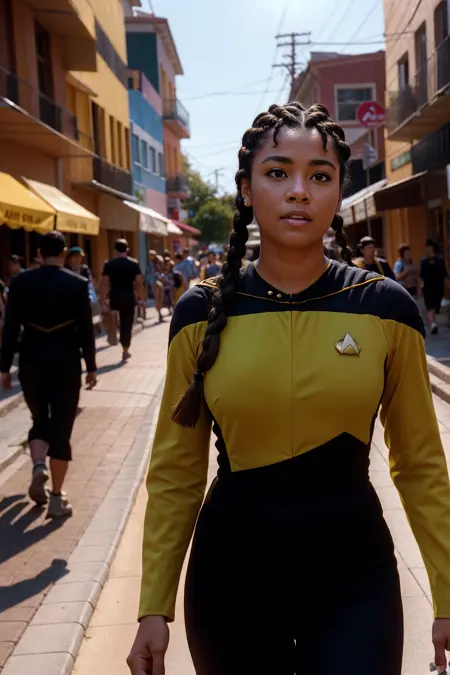 There is already a good LORA for composite star trek uniforms, this one is created to get the exact look of TNG ones.