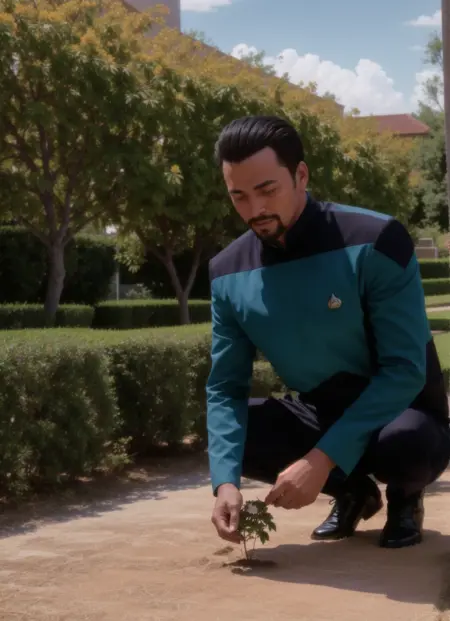 There is already a good LORA for composite star trek uniforms, this one is created to get the exact look of TNG ones.