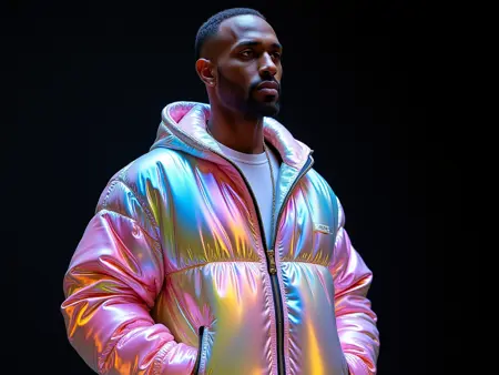 부드러운 핑크, 블루, 보라, 녹색 사이를 오가는 파스텔 톤의 역동적인 혼합. 이 색상들은 홀로그램 또는 진주광 효과를 만들기 위해 겹쳐지며, 독특한 방식으로 빛을 잡고 반사하는 하이라이트를 포함합니다.