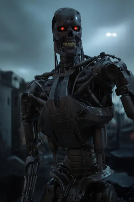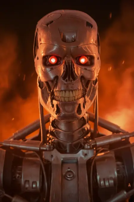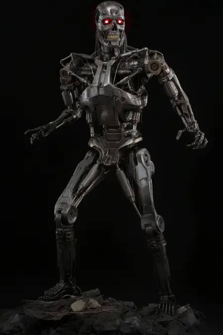 an UpgradedT800_Endo Terminator Robot with red eyes