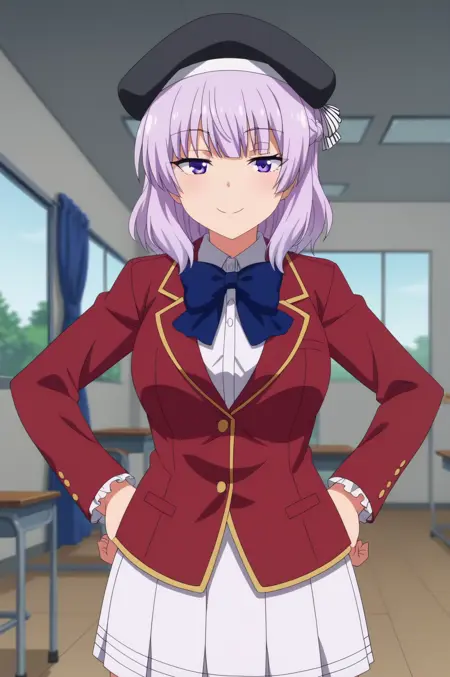 Arisu Sakayanagi ,bangs,bow,jacket,hat,shirt,school uniform,bowtie,braid,blue bow