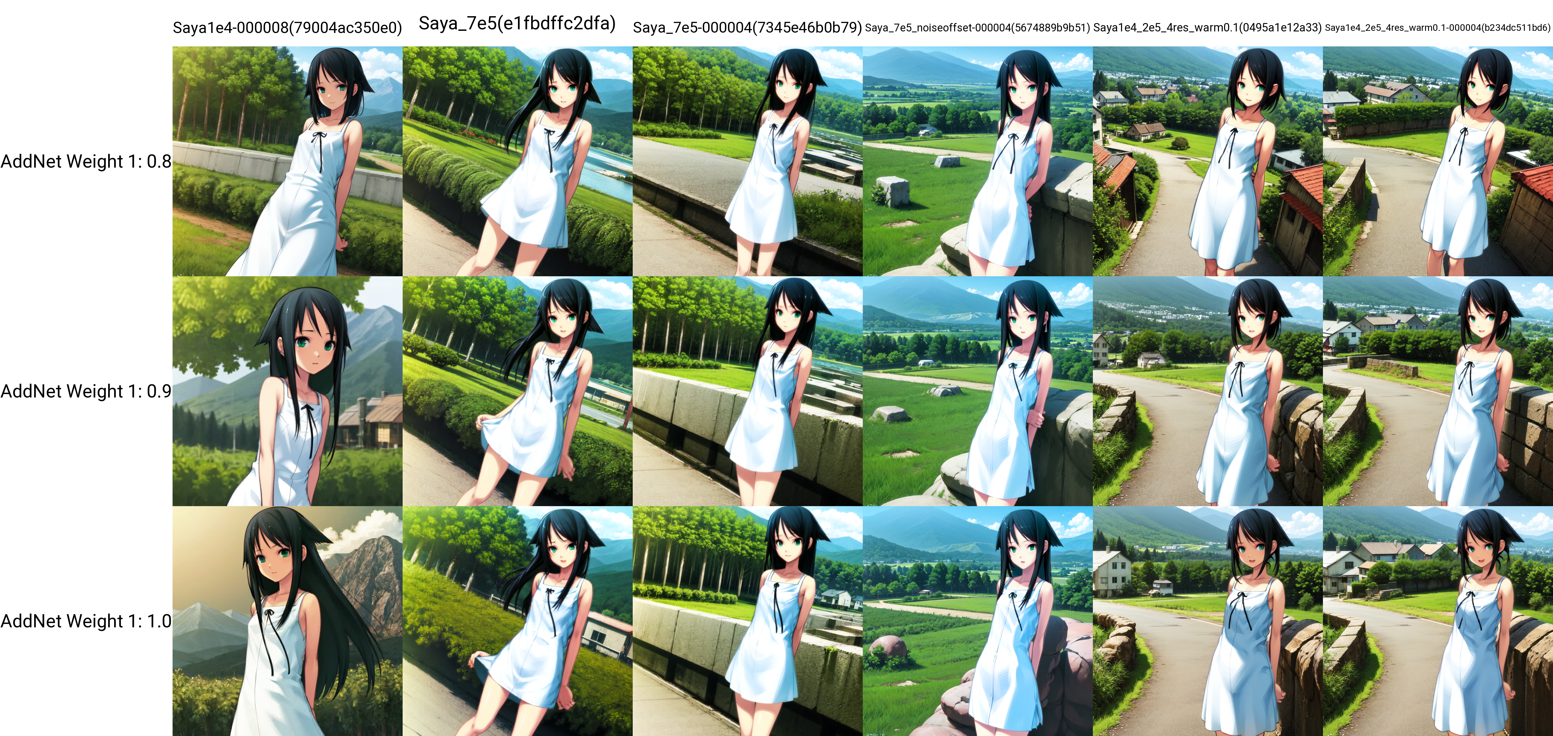 As the title says, Saya no Uta style model that includes all main characters except for Tsukuba You - perhaps most notably it can reproduce the meaty backgrounds from the visual novel. Should get the characters right with eye/hair color and length alone, but refer to grid and bottom of the description if encountering issues. As with all my loras, grid images not cherrypicked and definitely not the best it can generate.