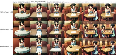 他のローラとの併用も問題なく可能ですが、重みの調整が必要な場合があります。ミエヤの例をご覧ください。Civitではサイズが大きすぎるので、高解像度版はこちらにリンクしています https://files.catbox.moe/tdieli.png。このモデルが豊かな背景をどのように活用できるかのより良い例は、同じニックネームでピクシブに掲載されています。