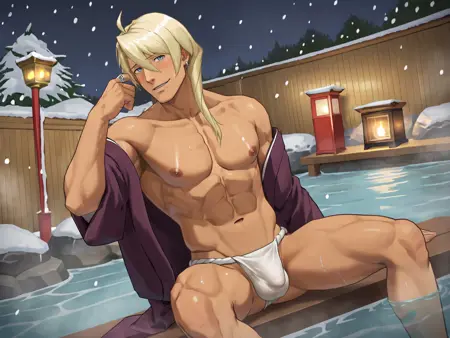 触发词: kl4vier, 深色皮肤男性, 金发, 蓝眼