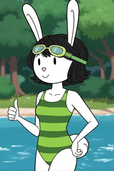 このLoRAは、『Elinor Wonders Why』のミス・ラビット(通称:レンジャー・ラビット)に似た画像を生成するのに役立ちます。