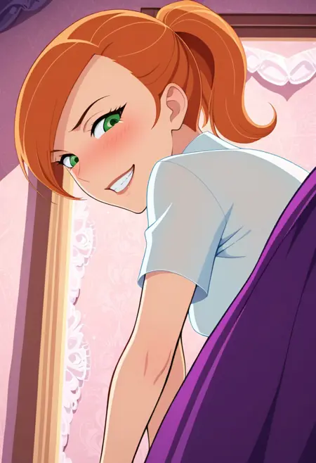 김, 작은 가슴, 주황색 머리, 녹색 눈,