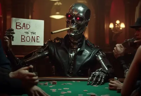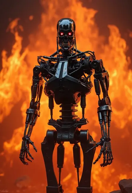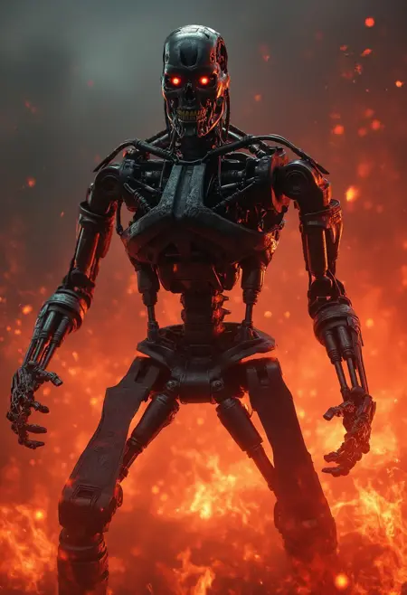 an UpgradedT800_Endo Terminator Robot with red eyes
