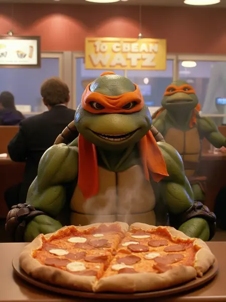제 AIO TMNT LoRA의 Flux 버전입니다. 이 모델은 1990년대 첫 번째 TMNT 영화의 다양한 예술 작품/스타일 약 300장과 선택된 영화 프레임을 결합하여 학습되었습니다.
