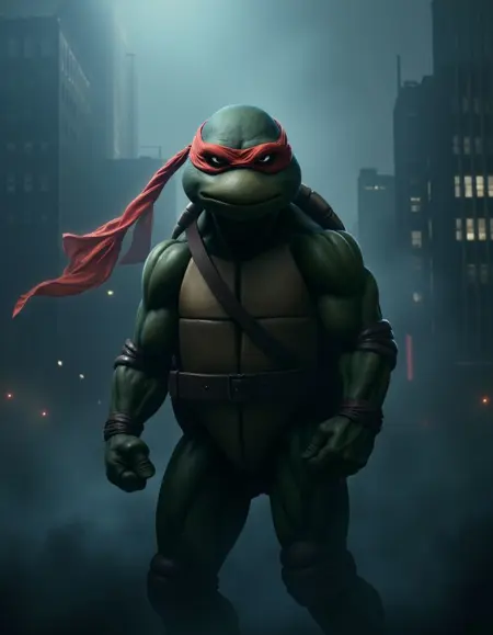 프롬프트로 지정한 거북이가 제대로 생성되지 않을 경우—예: 잘못된 마스크 색상—"눈 구멍이 있는 (보라/주황/파랑/빨강) 밴다나 마스크를 착용한"이라는 문구를 사용하는 것을 강력히 추천합니다. 괄호( )와 슬래시(/)는 제외하세요.
