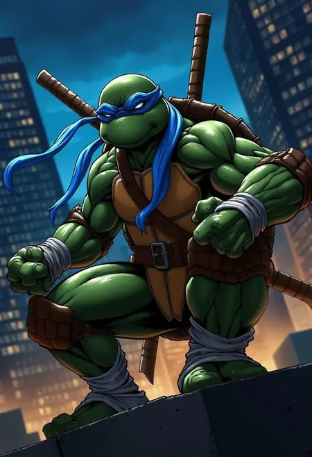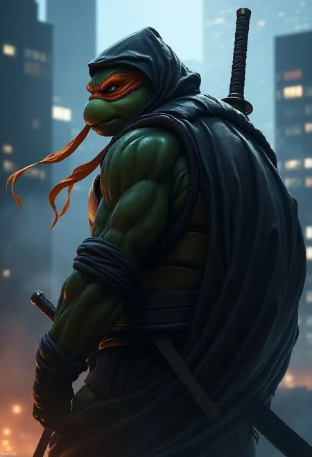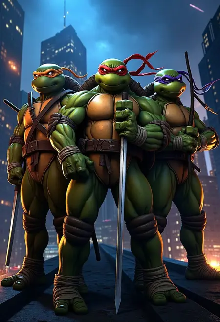 Flux version of my AIO TMNT LoRA. This model was trained on a combination of about 300 images including different art pieces/styles and select movie frames from the first 90s TMNT movie.