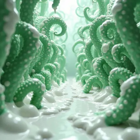 このFLUX LoRAは、あなたの画像に多くの白い粘液を伴う緑の触手をもたらします。