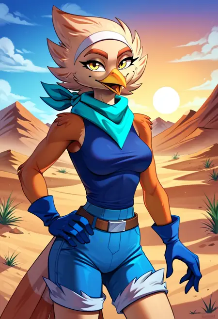Kaiko Goch, an anthropomorphic guira cuckoo, an original character created by Kukuhich/kykywka999 (https://t.me/kykywka999). LoRA was train on (mostly) her artwork with her permission.