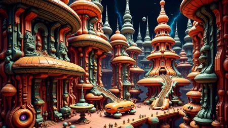 Adds lots of fancy little greebles to your scifi cities. No trigger word necessary, but "greebles" can't hurt. :)