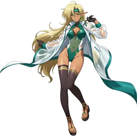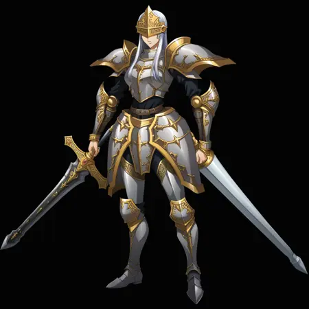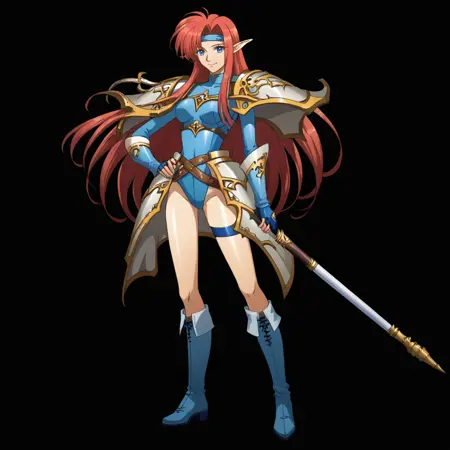 该模型旨在重现Gacha游戏《兰斯尔移动版》的视觉风格。我将这种艺术风格描述为试图将漆原智志的设计美学(肩甲、铠甲、胸部比例等)与更现代的艺术技法相结合。
