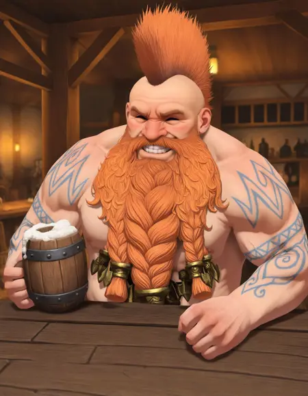 DwarfSlayer, 莫霍克发型, 橙色头发, 文身,
