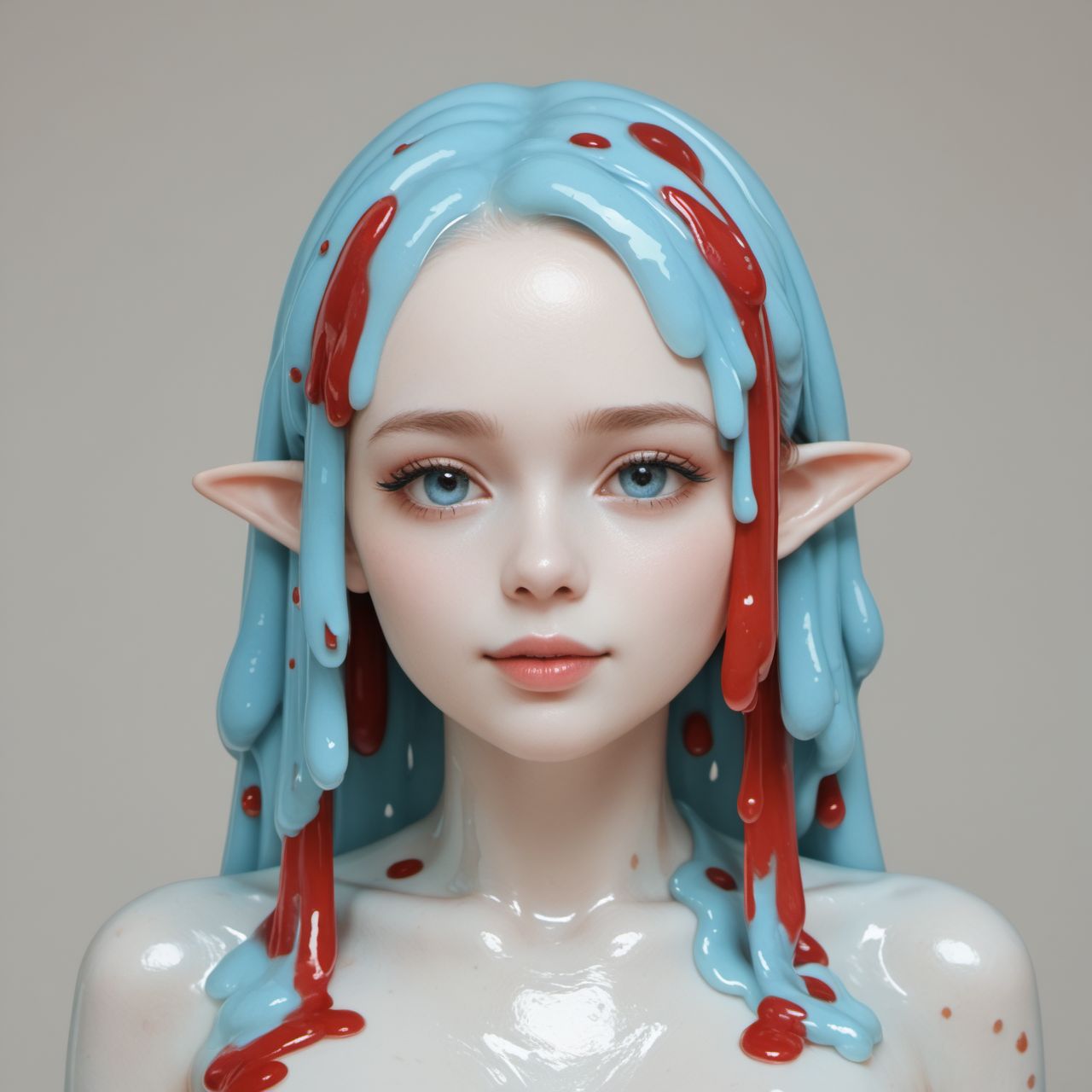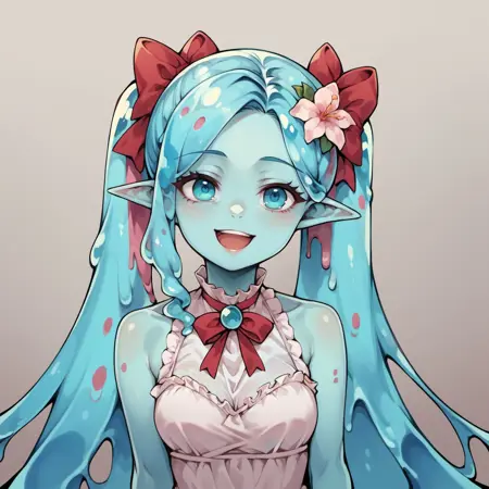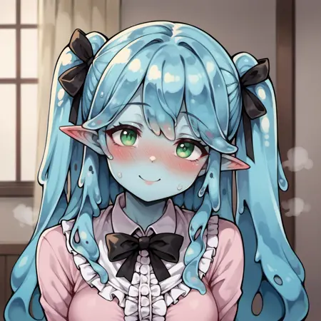 트리거: mincho, 파란 피부, 색깔 있는 피부, 액체 같은 머리카락, 뾰족한 귀,