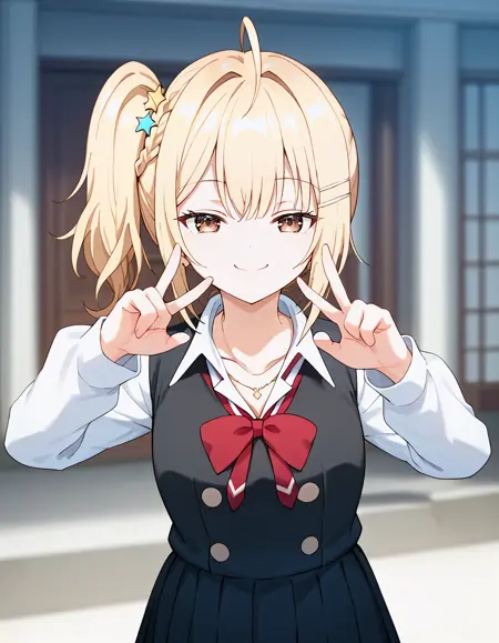 nonoa miyamae, blonde hair, medium hair, side ponytail, side braid, sidelocks, star hair ornament, hairclip, ahoge, brown eyes, ear piercing, pink nails
