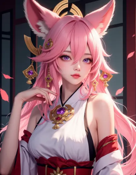 これは私がFlux用に初めてキャラクターロラを作成したので、私はギンシェンインパクトの好きなキャラクターである八重神子から始めました :)