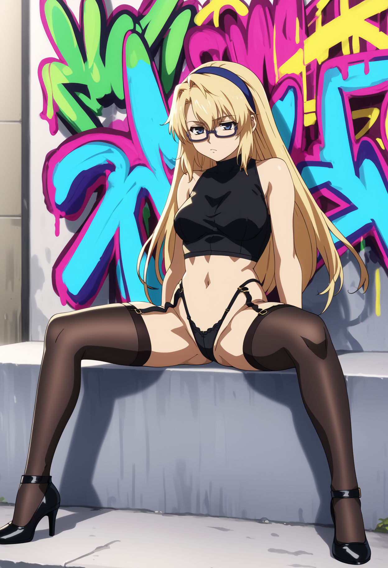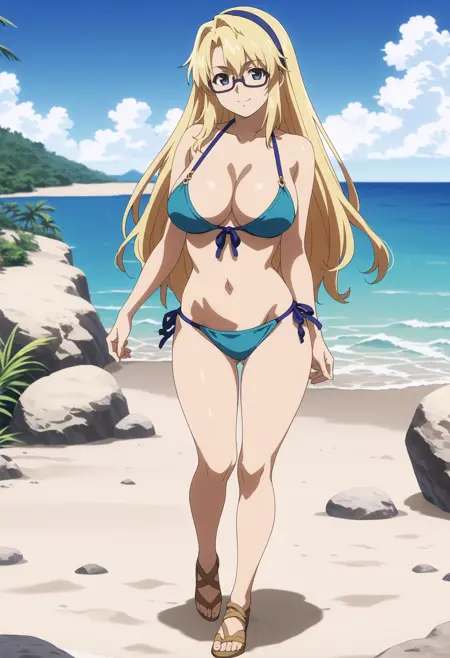 基础提示词:1girl, satella, blonde hair, long hair, blue eyes, blue hairband, glasses