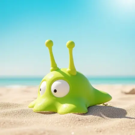 "脳蛞蝓は、宇宙寄生生物で、ゼリー状の体を被害者の頭に接着させ、脳を支配します。この個体はライム色をしており、透明なゼリー状の体に二本の触手と一つの大きな眼球が備わっています。成体の脳蛞蝓はこぶし大ほどのサイズです。"