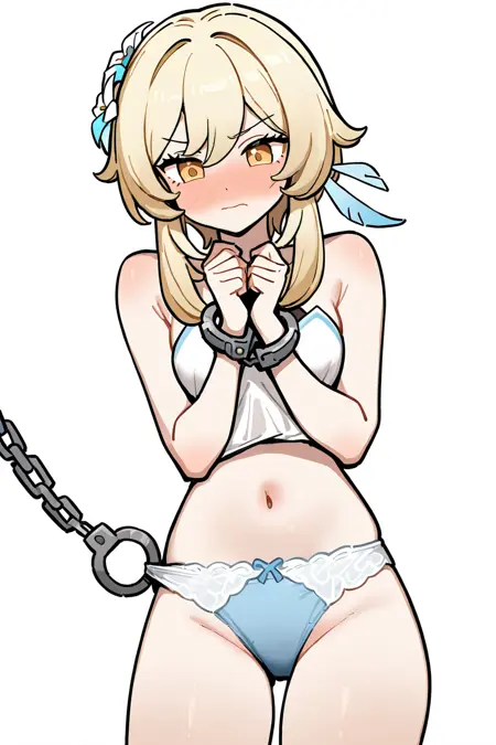这个LoRA并不太好,因为素材太少,而基础模型基本识别不了这个动作。制作这个LoRA完全像盲人摸象:先用几张图生成图像,再训练一个LoRA跑出几张相对合适的,然后加入训练集继续训练……效果并不理想,但至少能基本实现内裤上锁,而不是锁在其他部位(不过仍有可能锁到其他地方)。这种性感的动作真是太棒了!为什么没有单独的标签或合集呢?