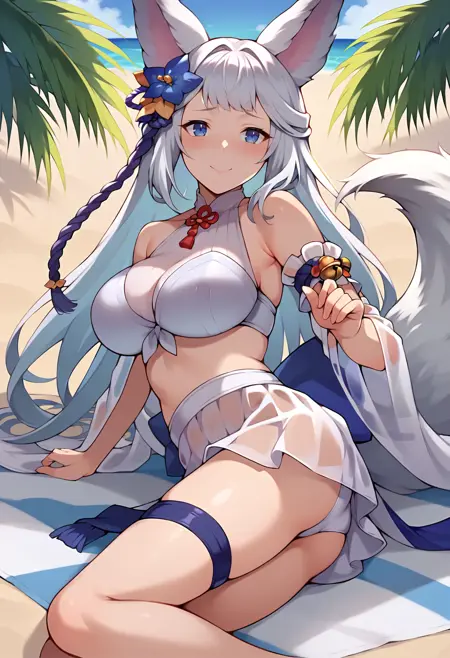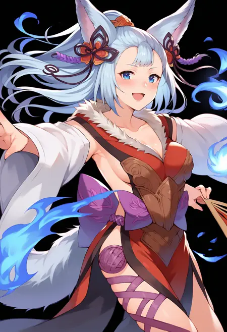 - gbfsocie, 여우 귀, erune, 여우 꼬리, 긴 머리, scssrred, 중앙 플랩 앞머리, 머리 장식, 털 장식, 클러비컬, 사이드북, 사이드리스 옷, 분리된 소매, 넓은 소매, 교차 끈 다리 착용, 발목 장식,