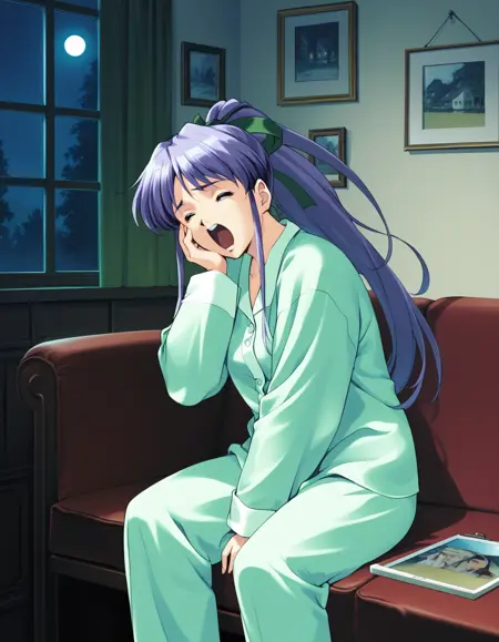 - nagisa, green hair, hairband, yellow nightgown
