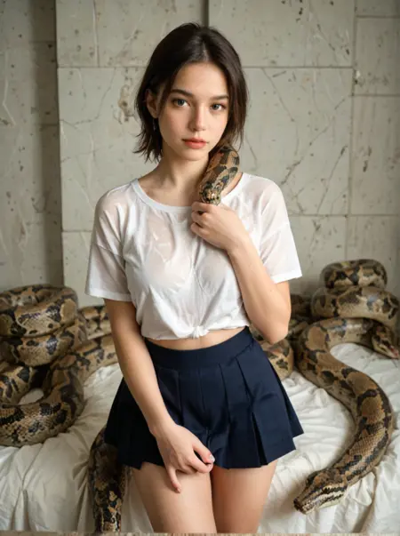裸の女性と蛇によって学習されたが、テストしたところ、服を着た状態でも動作することが確認された。蛇の解剖学的構造が不正確な可能性がある。修正にはインペイントを推奨する。